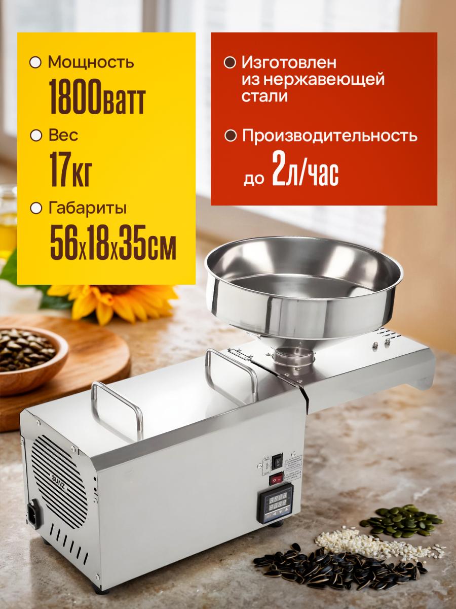 Страна производитель AKITAJP AKJP - 700 - Тайвань, номинальная мощность 1200 Вт, максимальная мощностью 1800 Вт и весом 15 кг, способен производить большое количество масла. Процесс получения масла ведется непрерывно. При непрерывном режиме работы минимальное получение продукта 50%, максимальный выход - 80%. Габариты пресса 56 см х 18 ммх 35 см.