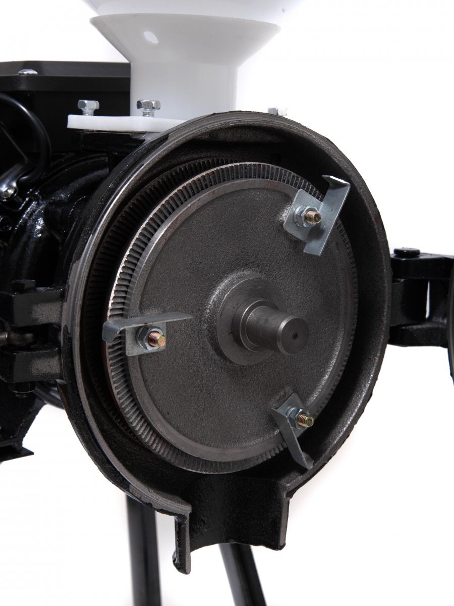 Несмотря на название, она подходит для измельчения и зерновой продукции. Такой, как: пшено, греча, рис, кукурузная крупа, овсяная, ячмень, горох. Что будет незаменимо в промышленности. Например, на предприятиях по производству круп, муки. Также отлично подойдет и для помола кофейных зёрен, специй, разной тонкости помола, порошка.Профессиональная мельница выполнена небольшой конструкцией. Диаметр жернова мини-мукомолки равен 150 миллиметрам. Высота всего прибора составляет 780 мм. Длина – 510. В то время как ширина равна 360 миллиметрам.